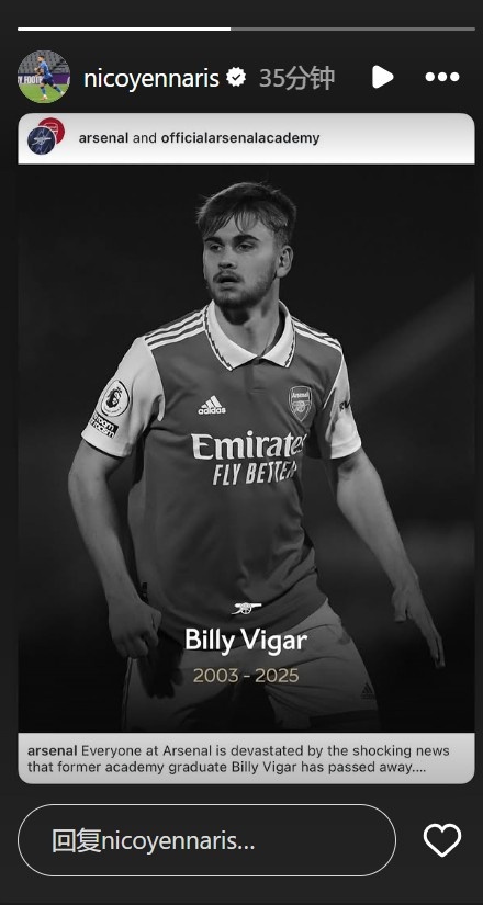 【有关新闻】因脑挫伤去世🕯阿森纳官方吊问前青训球员维加:他将历久被铭刻