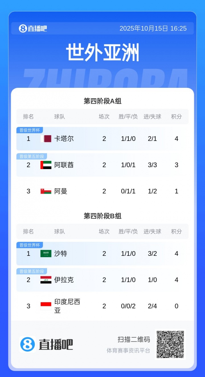 10月15日讯 世初赛亚洲区第四阶段鸿沟,该阶段的两个专揽国度卡塔尔和沙特均奏凯晋级,两队主场作战加之能比其他球队多休息3天的安排,遭到了其余国度的集体炮轰。