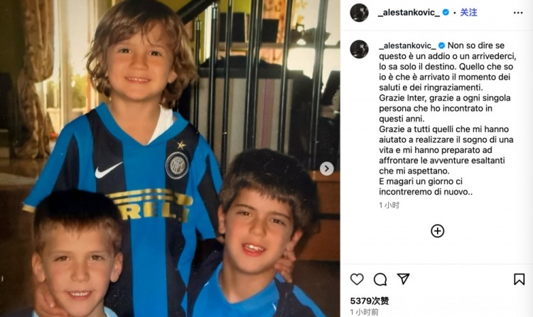 7月25日讯 国米中场斯坦科维奇依然加盟布鲁日,球员在个东谈主INS上发文,告别蓝黑军团。