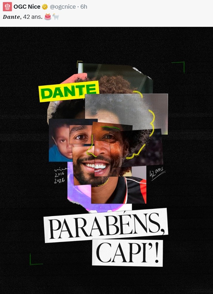 今天是丹特42岁诞辰,这名巴西后卫也成为法甲自1947/48赛季之后,出场第三年长的球员,仅次于罗杰-库尔图瓦的44岁4天以及维托里诺-希尔顿的43岁252天。