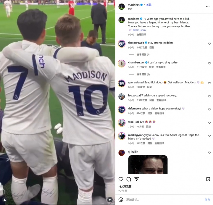 08月04日讯 热刺中场麦迪逊在社媒发文,问候行将离队的孙兴慜,但幸免说起了我方的伤情。