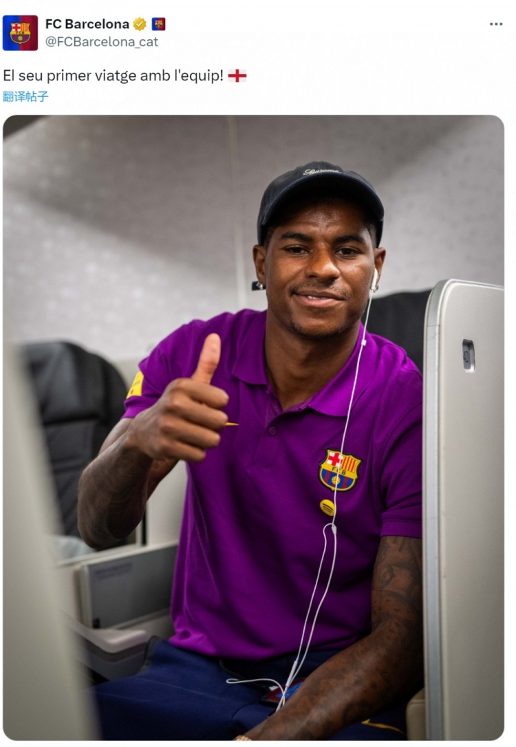 7月25日讯 巴萨官方更新社媒动态,晒出拉什福德在飞机内的相片。