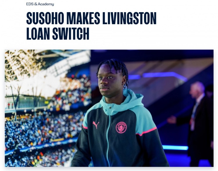 9月2日讯 曼城官方证明,苏索霍租赁至苏超利云斯顿,租期为一个赛季。