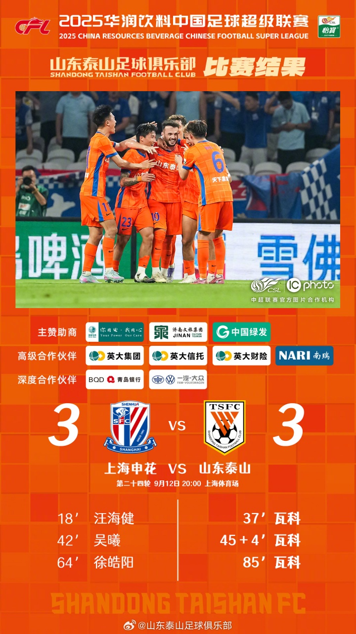 酷暑的天气莫得叛逆泰山队前进的举止!天然咱们莫得在上海带走告捷,然则这场比赛充分展示了什么是泰山队精神!感谢通盘来到客场为球队加油壮胆的球迷们。咱们会继续承袭着永不毁掉的派头,靠近改日的每一场比赛!