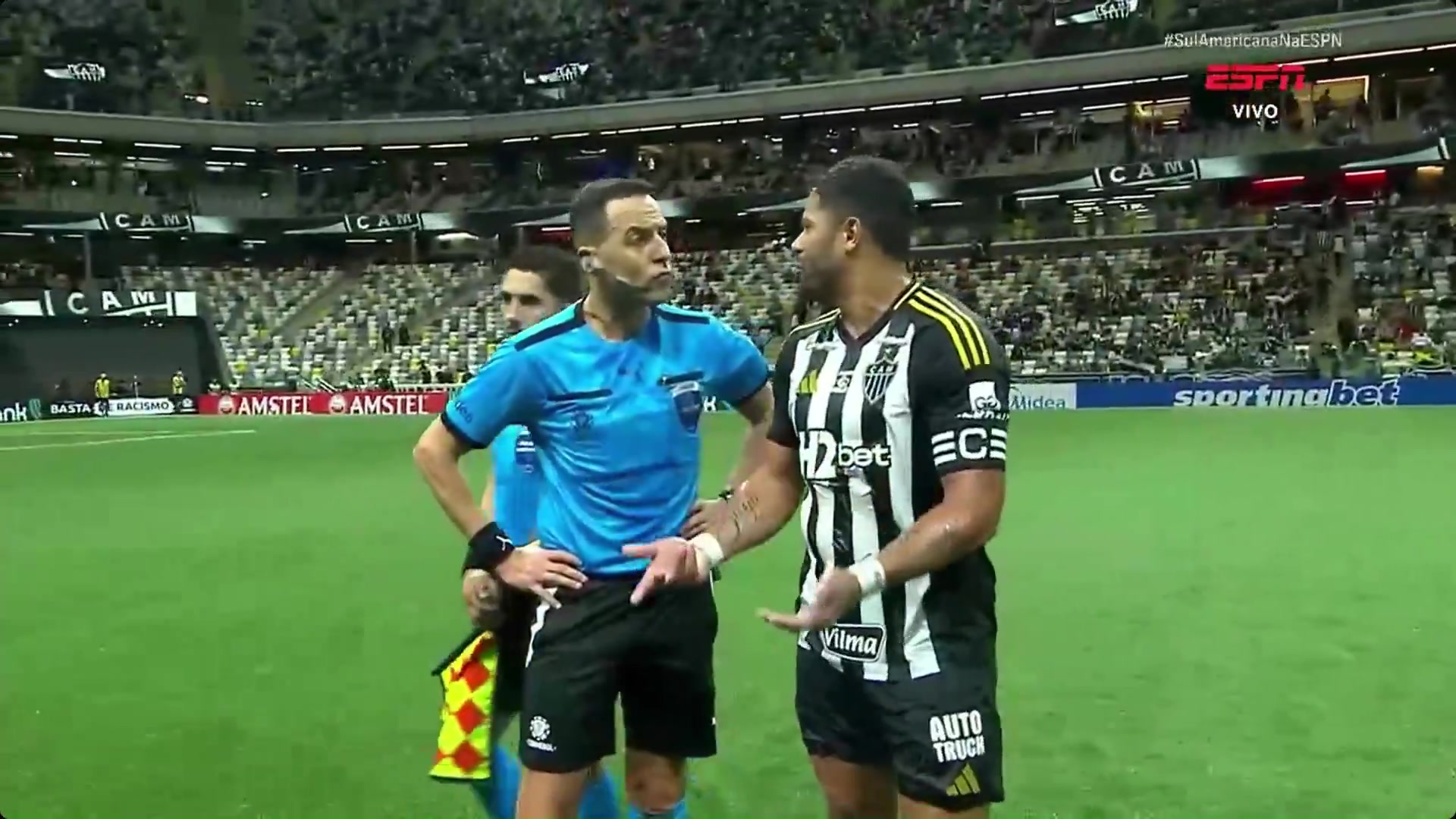 比赛参预点球大战之前,米内罗竞技球员胡尔克与裁判通常,两东谈主笑着交流。随后裁判对胡尔克出示一张黄牌,胡尔克心境终点狐疑不明。
