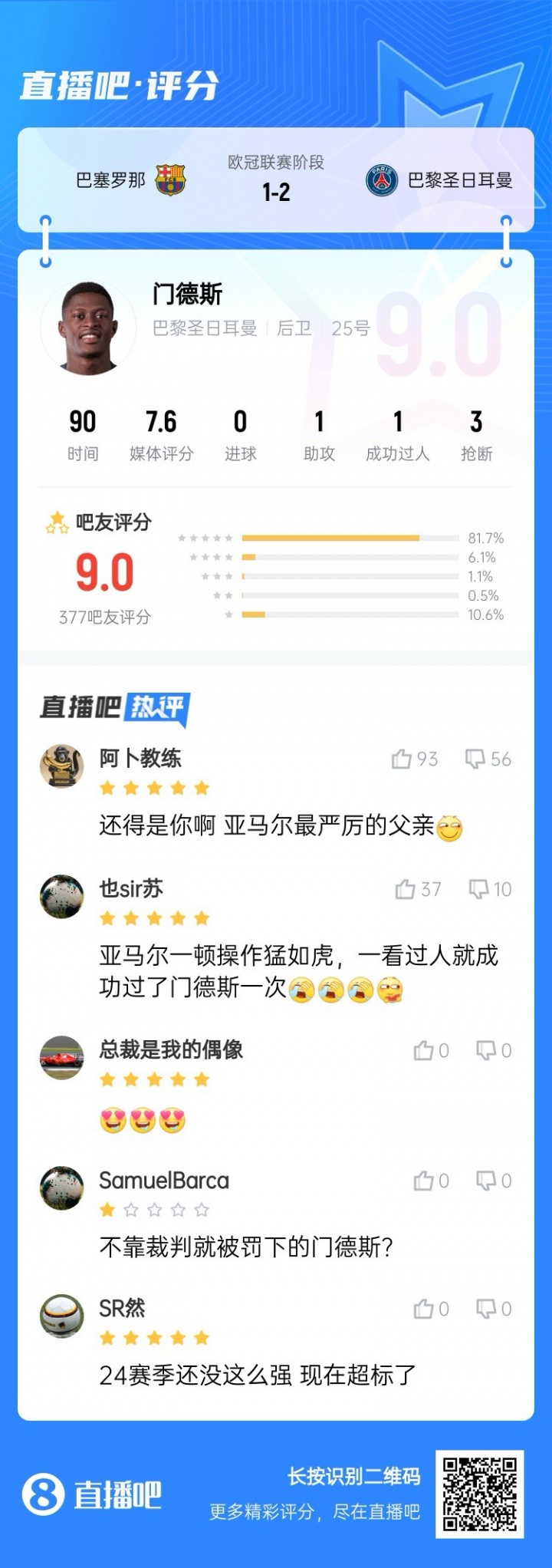 吧友们觉得门德斯本场是否鸿沟了亚马尔的发挥?