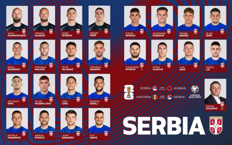 10月4日讯 塞尔维亚国度队公布了新一期大名单,插足对阿尔巴尼亚和安说念尔的两场寰球杯欧洲区预选赛。