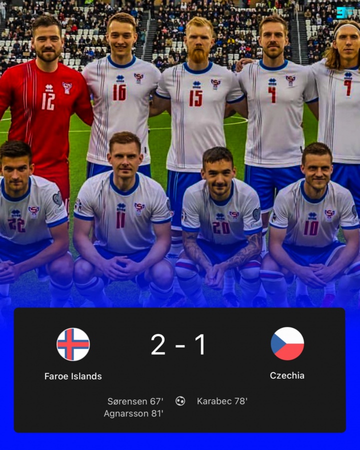 本场比赛,哈努斯-索伦森为法罗群岛首开记载,随后卡拉贝克为捷克扳平比分。关联词,只是3分钟后,法罗群岛再度超越。