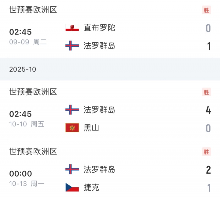 世初赛赛场,法罗群岛现在已完结3连胜,先是客场1-0征服寰球第200的直布罗陀。随后勾通两场以下克上,主场先后4-0寰球第80的黑山和寰球第39的捷克。