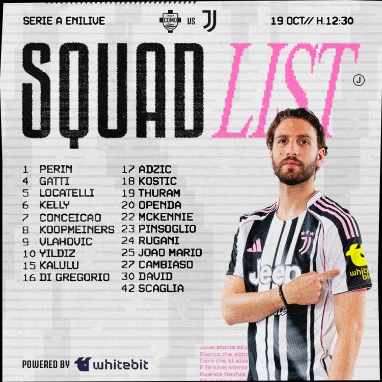 10月19日讯 北京技艺10月19日18:30,2025-26赛季意甲第7轮,尤文图斯将客战科莫。赛前尤文臣方公布本场比赛大名单,弗拉霍维奇领衔锋线,伊尔迪兹、戴维在列。