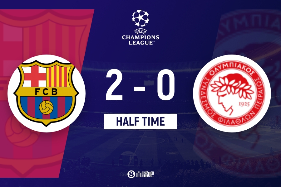 上半场伤停补时2分钟,半场放手,巴萨暂2-0奥林匹亚科斯。