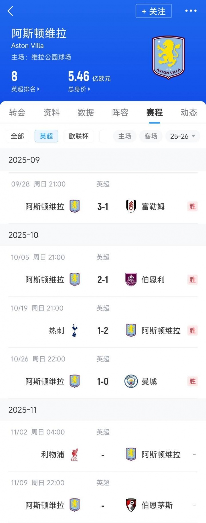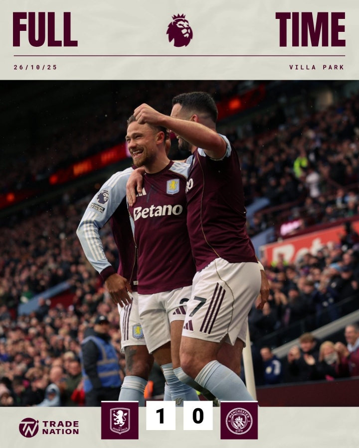 10月27日讯 英超第9轮,阿斯顿维拉1-0力克曼城,豪取联赛4连胜。