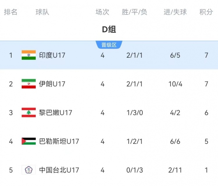 印度U17最终在末轮2-1力克伊朗U17,得以在同分情况下凭借赢输磋议而力压敌手,见效晋级来岁的U17亚洲杯正赛。