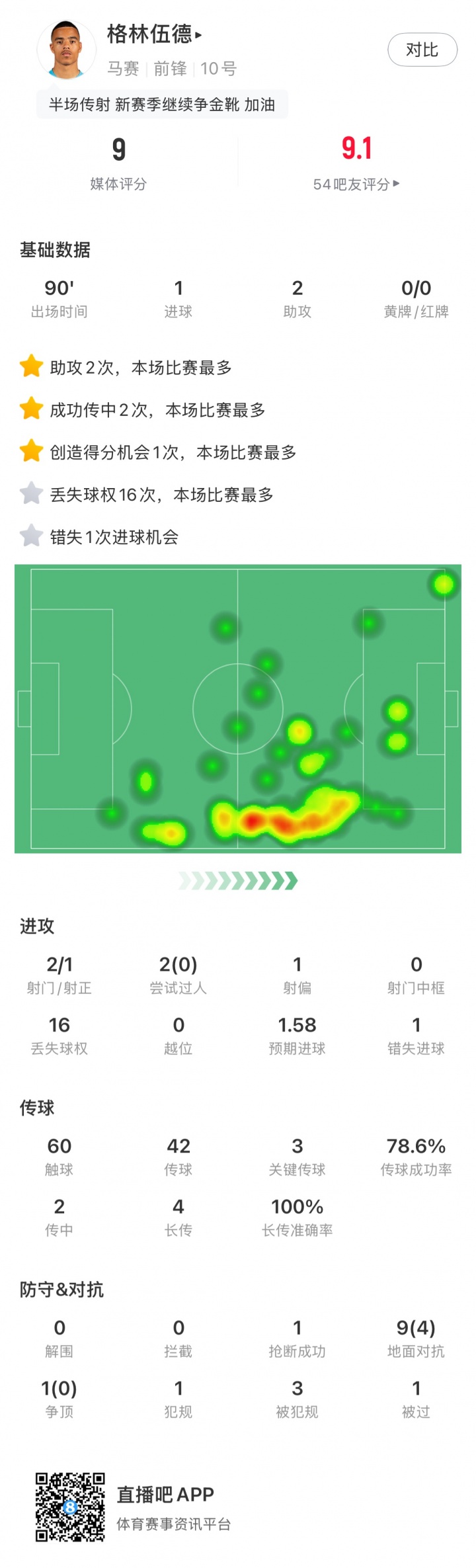 格林伍德本场数据↓