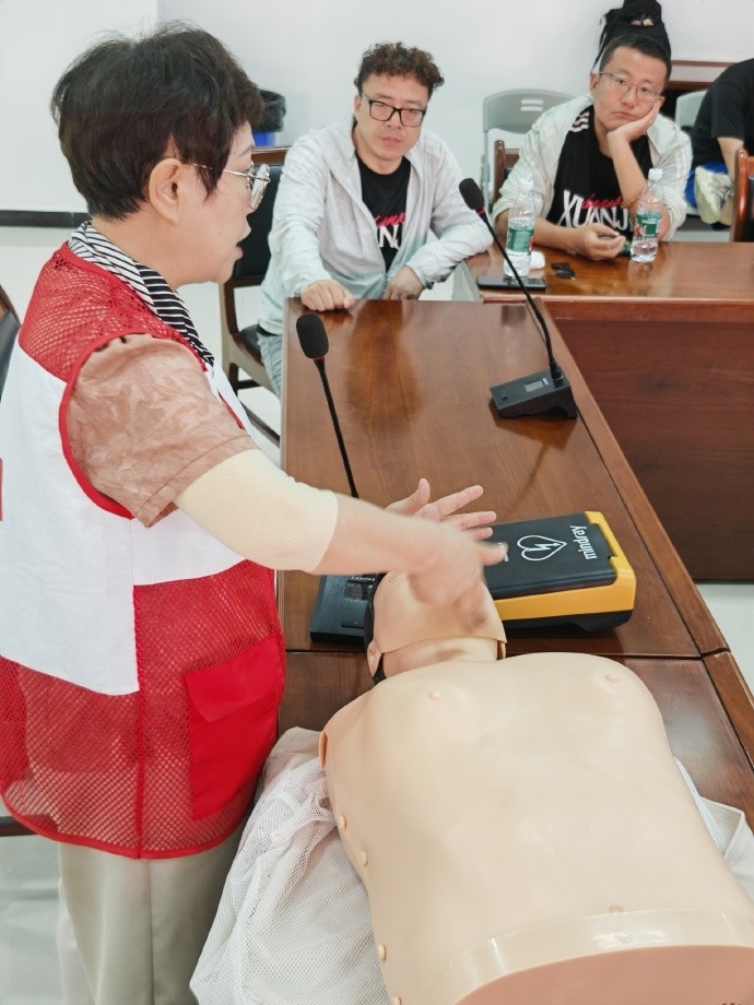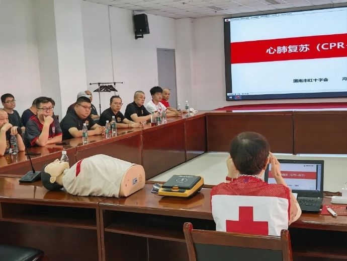 赛前,俱乐部邀请渭南市红十字会行家为各球迷协会主干代表开展专项济急救护培训。从心肺复苏术(CPR)的圭臬操作,到自动体外除颤器(AED)的程序使用,再到高温中暑的济急顾问技术,系统化的素质让球迷主干们掌抓了关键急救手段,为看台安全筑起了悉数由球迷群体共同参与的坚实防地。