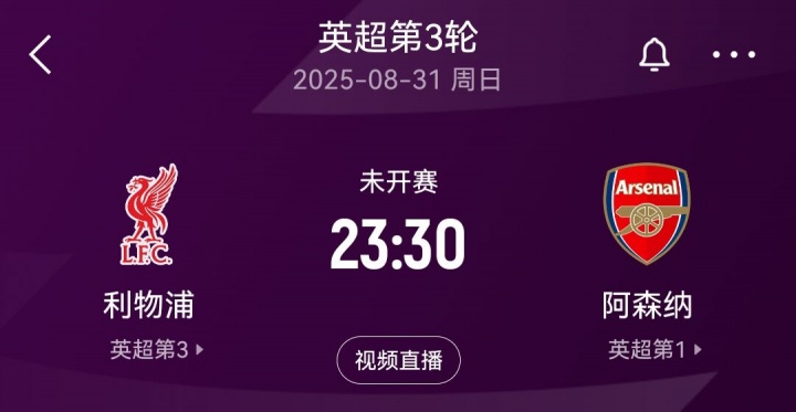 北京时辰8月31日晚23:30,英超第3轮,利物浦将镇守主场迎战阿森纳。
