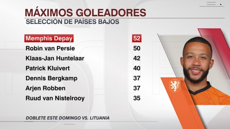 9月8日讯 荷兰在本轮世初赛3-2力克立陶宛,德佩梅开二度,并登顶荷兰队史弓手王。
