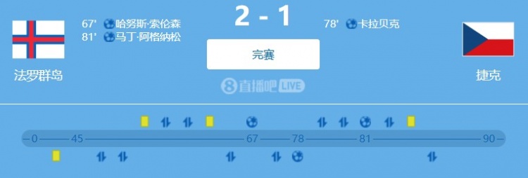 在10月13日的全国杯欧初赛中,全国名次仅第136法罗群岛在主场以2-1的比分驯服捷克,爆出遍及冷门。而捷克队也因为这场失利在与克罗地亚的竞争中处于残障,现多赛一场过期3分。