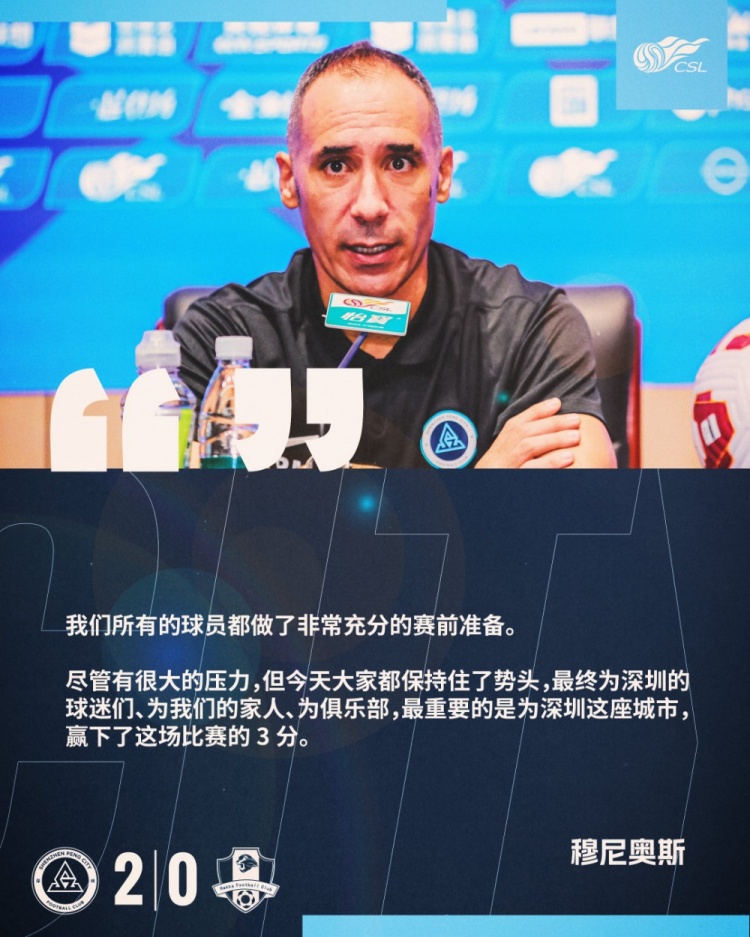 赛后新闻发布会上,主训诫佩普·穆尼奥斯默示:“咱们总共的球员皆作念了相当充分的赛前准备。尽管有很大的压力,但今天全国皆保抓住了势头,最终为深圳的球迷们、为咱们的家东谈主、为俱乐部,最紧要的是为深圳这座城市,赢下了这场比赛的3分。”
