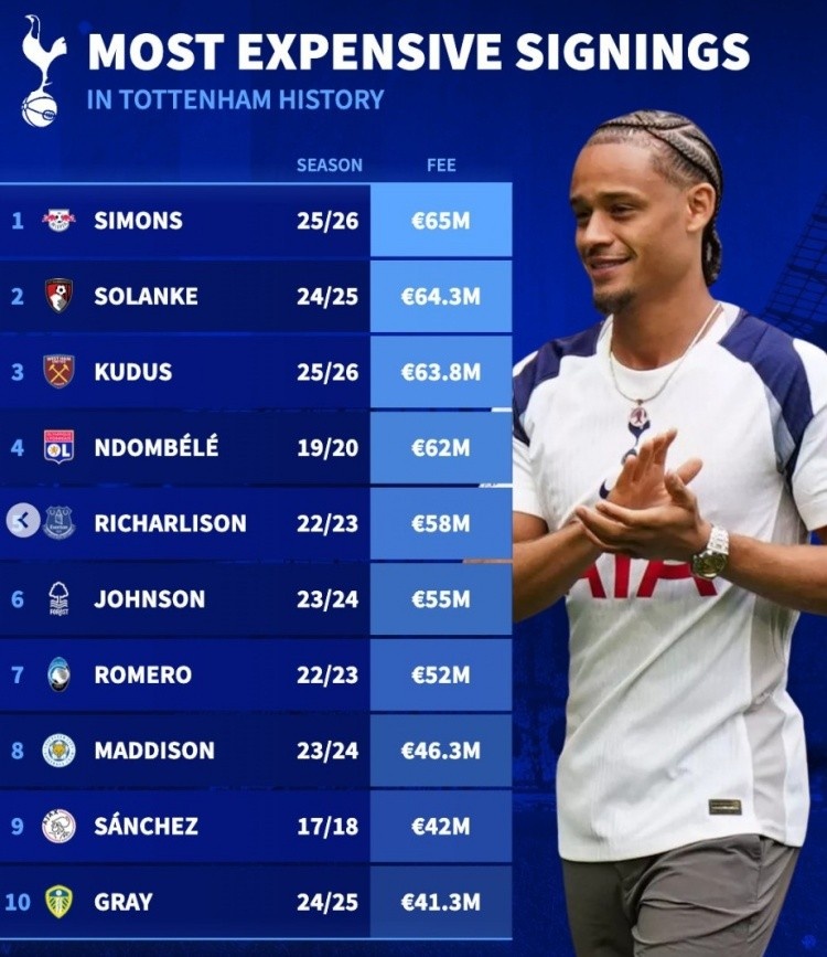 比年来,热刺的引援力度很大,每个赛季用来购买新援的资金王人在1.5亿欧元到2亿欧元傍边,个别赛季致使达到了2.72亿欧元。