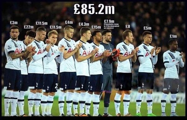 2016/17赛季,热刺以87分的队史最高积分夺得英超亚军,声势造价仅8500万欧元。